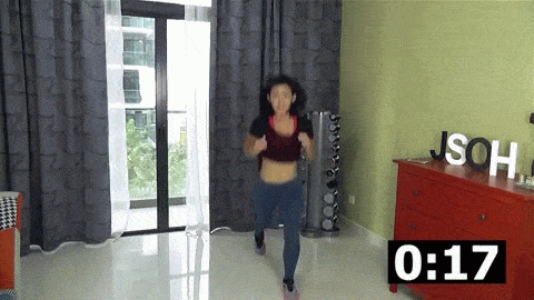 กระโดดย่อตัวโดยเหยียดขาซ้ายไปด้านหลัง ขาขวาย่อในลักษณะตั้งฉากกับพื้น จากนั้นกระโดดสลับขา ทำอีกข้างจนครบ 20 วินาที