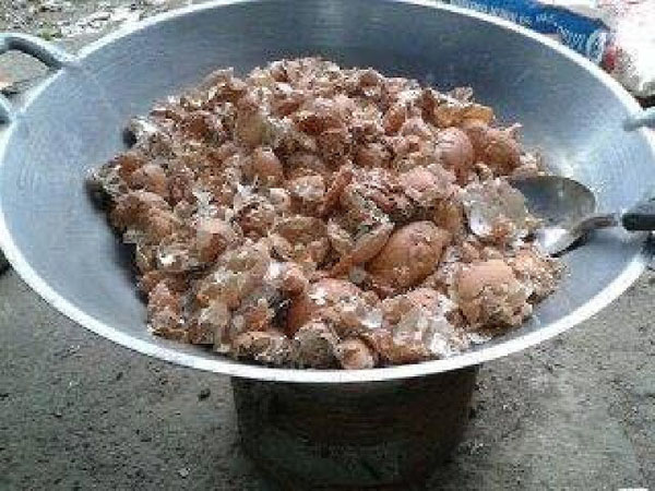 3. หลังจากคั่วเสร็จ นำมาตำให้ละเอียด หรือถ้าไม่ตำจะนำไปใช้เลยก็ได้ แต่ถ้าตำละเอียดเราสามารถใช้เป็นปุ๋ยทางใบได้