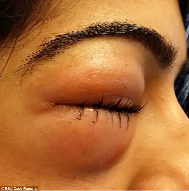 ทั้งนี้ก็เนื่องมาจากก่อนหน้านี้เธอมีอาการคัดจมูก และได้มีการสั่งน้ำมูกนานนับ 4 ชั่วโมง หลังจากนั้นตาของเธอก็ค่อยๆ บวมเป่งลูกกอล์ฟในเวลาไม่นาน