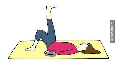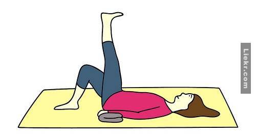 (1) นอนราบลงกับพื้น ใช้ผ้าม้วนหรือพับมารองไว้ใต้ก้นกบ ยกสะโพกขึ้นเล็กน้อย