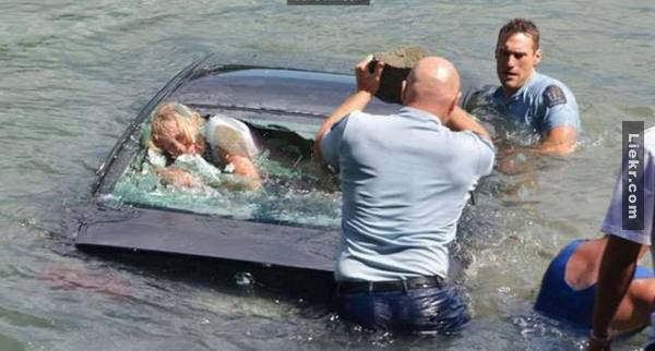 ▼เจ้าหน้าที่ตำรวจหนึ่งในนั้น ได้นำก้อนกินขนาดใหญ่ทุบกระจกรถ และเจ้าหน้าที่ตำรวจอีกคน(จากรูปด้านบนนะค่ะ) ได้ประคองรถยนต์ไว้ เพื่อให้รถยนต์จมช้าลง สุดท้ายแล้วก็สามารถช่วยผู้ประสบเหตุออกมาจากรถยนต์ได้ ใช้เวลาในการช่วยเหลือเพียง40วินาที หากนานไปกว่านี้ เธออาจเสียชีวิตได้ค่ะ