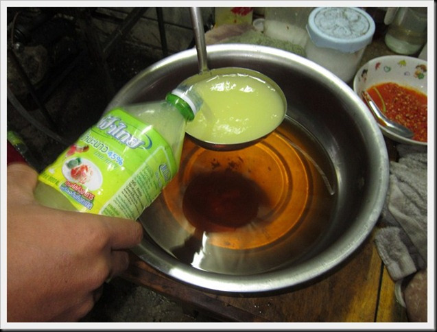 จากนั้นใส่น้ำมะนาวลงไป 4-5 กระบวย