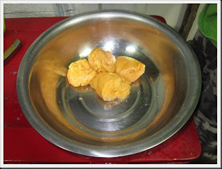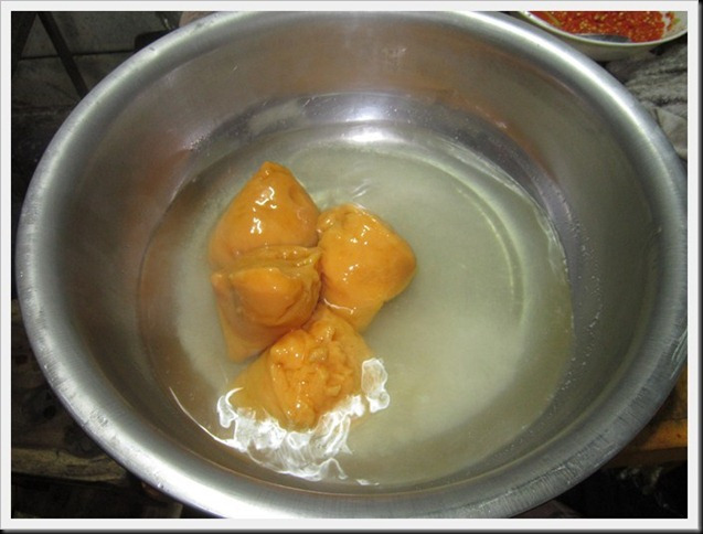 ใส่น้ำร้อนลงไป 3 กระบวยครึ่ง(กระบวยตามรูป)