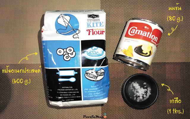 นำแป้งอเนกประสงค์ใส่ลงในอ่างผสม
